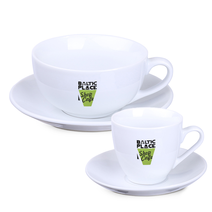 A coffee set with clearly defined rounded shapes. It is possible to freely select the quantity of items in the set, assuming a minimum total order quantity of 24 pieces.