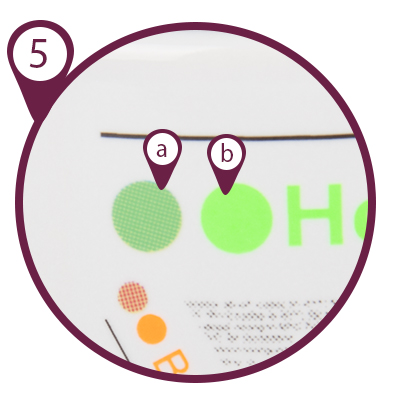 Comparison of colors achieved with CMYK (a) and Pantone (b) prints: