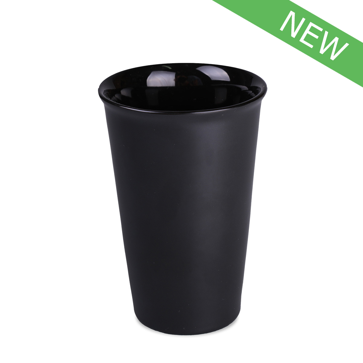 Porcelain advertising mug without ear. Thanks to the rare internal structure of double walls made of porcelain, this mug has an increased level of thermal insulation.